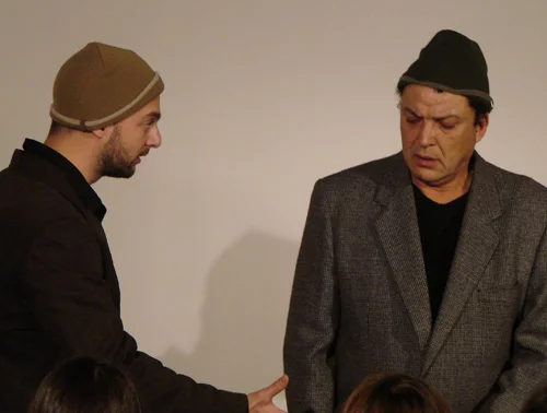 Lazare a 35 ans, il est improvisateur, metteur en scène et auteur. En septembre 2006, il réunit autour de lui une équipe de six acteurs et présente à la halle Saint Pierre (musée des arts naïfs à Paris) la première ébauche théâtrale d’un ensemble de plusieurs de ses textes réunis sous le nom : Passé – je ne sais où, qui revient.