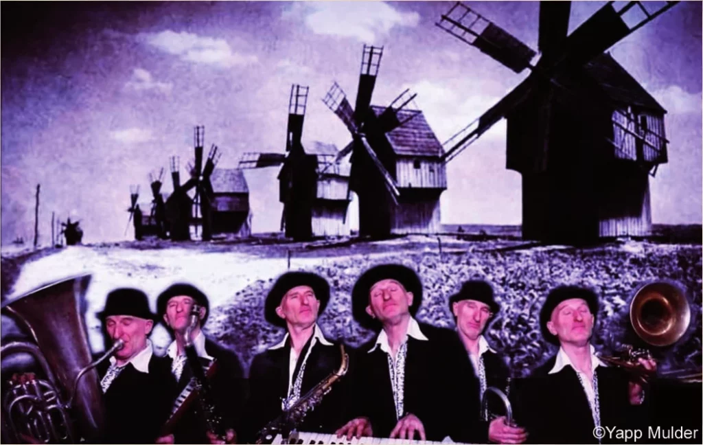 Jaap (Yapp) Mulder, né en 1959, est un clarinettiste-saxophoniste néerlandais virtuose, un chanteur et conteur théâtral, « un personnage pittoresque », selon ses voisins d’Eymoutiers (Haute-Vienne), village dont il est tombé amoureux au point de s’y installer. Il introduit la musique klezmer et yiddish au Pays-Bas en 1988, avec son groupe Di Gojim, dont il est le leader artistique pendant plus de 30 ans. En 2022, il fonde le groupe Héjre Kati-Balkan Klezmer band, puis en France en 2023, le Trio Gare de l’Est. Avec ses fils David (batterie) et Ruben (piano), Jaap forme le trio Mulder & Sons, avec qui ils réalisent un programme de théâtre musical en néerlandais et en français, composant eux-mêmes toute la musique, un mélange de folkpop, de balkanique, de yiddish et de chansons, sur des paroles qu’ils écrivent et des poèmes internationaux.